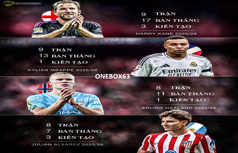 Số liệu ban đầu chỉ ra một điều: chưa có dấu hiệu nào cho thấy bất kỳ ai bị bỏ lại. Kane bùng nổ với hiệu suất kinh hoàng, Mbappe tiếp tục chứng minh bản lĩnh ngôi sao lớn, Haaland duy trì phong độ như cỗ máy, còn Alvarez thắp lên hy vọng của một thế hệ mới.