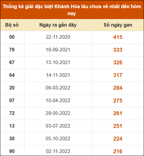 Thống kê 2 số cuối kết quả xổ số Khánh Hòa ngày 1 tháng 12 năm 2024