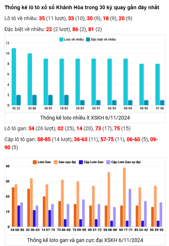 Thống kê xổ số Khánh Hòa trong 30 kỳ quay gần đây